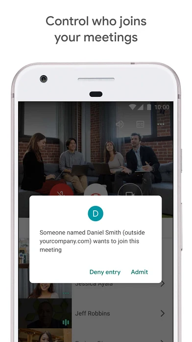 • Easy access on any device - share a link an...d invite team members to join your conversations with one click from a web browser or the Google Meet mobile app